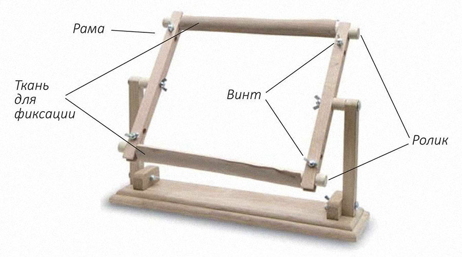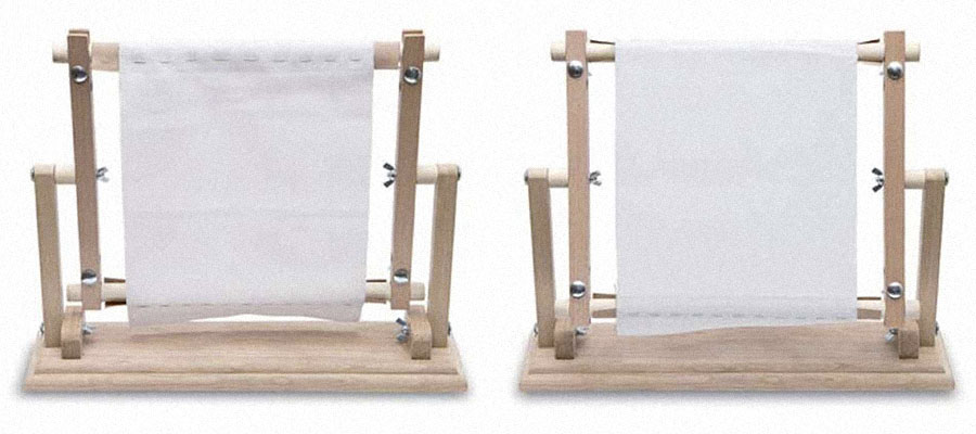 Чтобы основу в процессе вышивки не перекашивало, она должна быть равномерно натянутой. Для этого используют пяльцы или станки для вышивания.