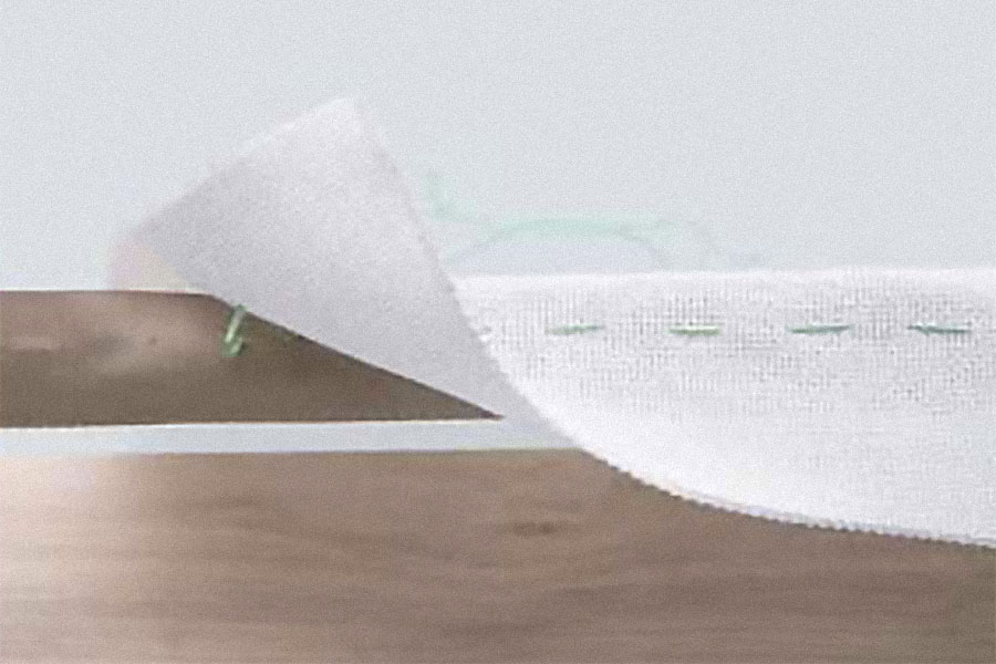 - Иглу втыкают в ткань и выводят нить таким образом, чтобы она осталась в полотне.