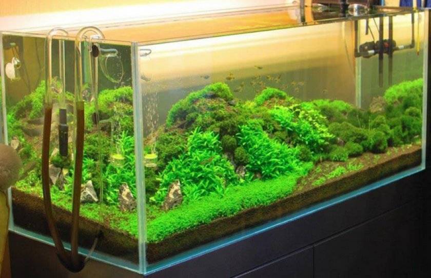 - если аквариум засажен сложными в уходе, требовательными растениями;