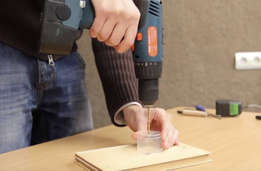 Подготовка крышки. При помощи сверла на 3 мм и 6 мм просверлить в крышечке два отверстия на приблизительно равном расстоянии друг от друга. Края крышки аккуратно очистить от заусениц посредством острого ножа. Также хорошо отшлифовать проделанные отверстия.