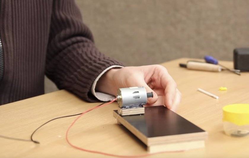 - моторчик. Подойдёт любой моторчик со средней мощностью с возможностью питания от электросети, например, моторчик от старого принтера. Устройства от игрушек не подойдут, так как обладают малой мощностью;