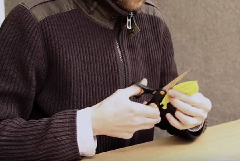 - Подготовка воздушного шарика. Шарик любого цвета (предпочтительнее выбирать светлые оттенки) разрезать вдоль до половины, чтобы получилось сплошное полотно.