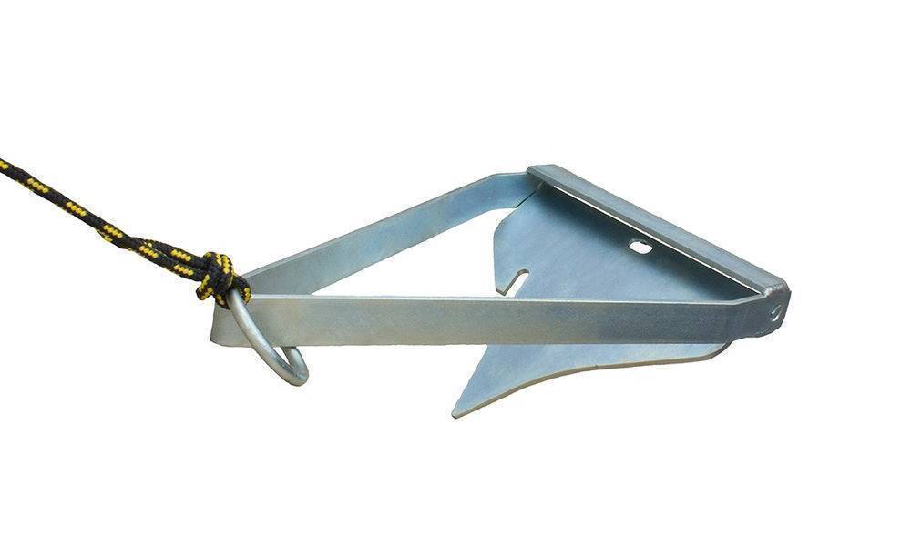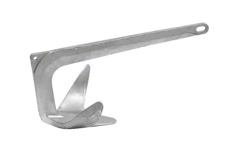 Этот якорь чем то напоминает плуг. Он зачастую совсем не легкий и не малогабаритный, но большим его плюсом является хорошее сцепление с илистым и каменистым дном. Его плоские лопаточки зарываются глубоко в дно до плотного грунта и обычная лодка ПВХ и течение его уже не сдвинет с места. Якорь Данфорта с массой около 2-х килограмм сможет держать на тячении лодку массао до 80 кг. Еще одним его преимуществом является то, что он легко снимается с зацепа.