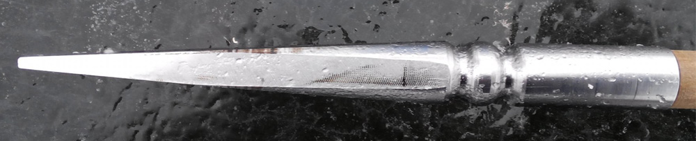 Пешня. Некоторые рыбаки, особенно из ряда новичков спросят – что это такое? Так вот, пешня – это инструмент ударного типа. Чаще всего – деревянная рукоятка и стальной заостренный наконечник. Им рыболов проверяет толщину льда.