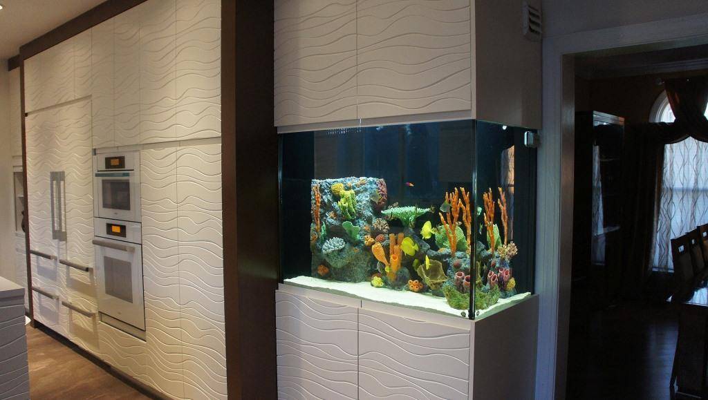 В случае если идей по обустройству нет, то можно подсмотреть в сети фото аквариума, сделанного своими руками. В общем и целом, домашний аквариум — это отличный способ раскрасить быт, а также найти успокоение в этом.
