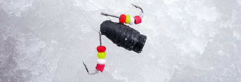 - грузило с двумя одинарными крючками в петле на конце основной лески. Груз, ударяясь о дно, поднимает облачко мути. Крючки продолжают шевелиться после остановки груза, тем самым вызывая поклевку рыбы;