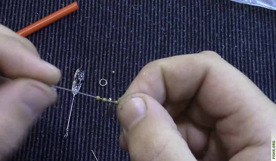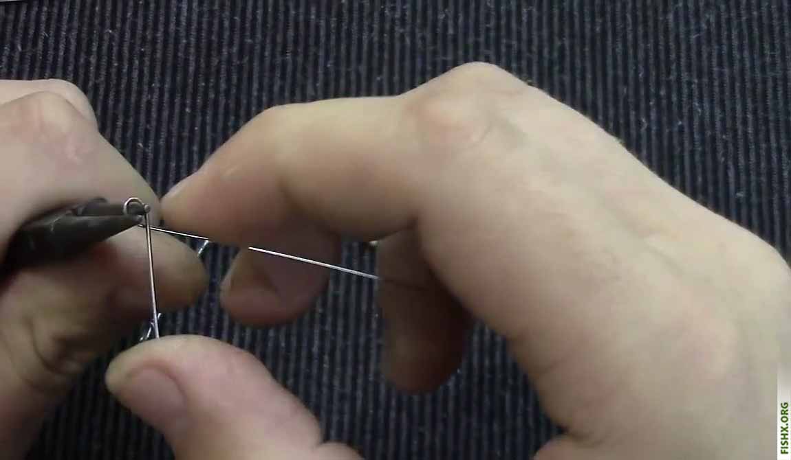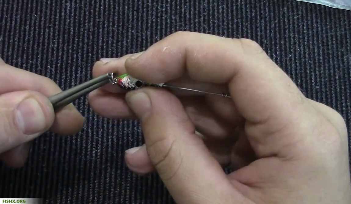 А дальше — самый ответственный момент. Нужно протолкнуть двойник сквозь приманку в сторону головы рыбки и постараться не повредить ее, чтобы он не вышел нигде сбоку, а проходил именно по центру. Это достаточно ювелирная работа, поэтому ее лучше проделывать дома, до собственно визита на водоем.