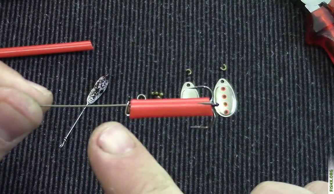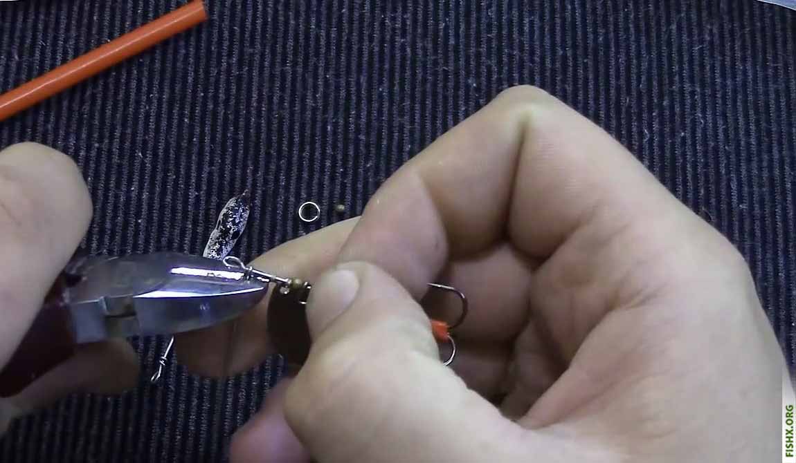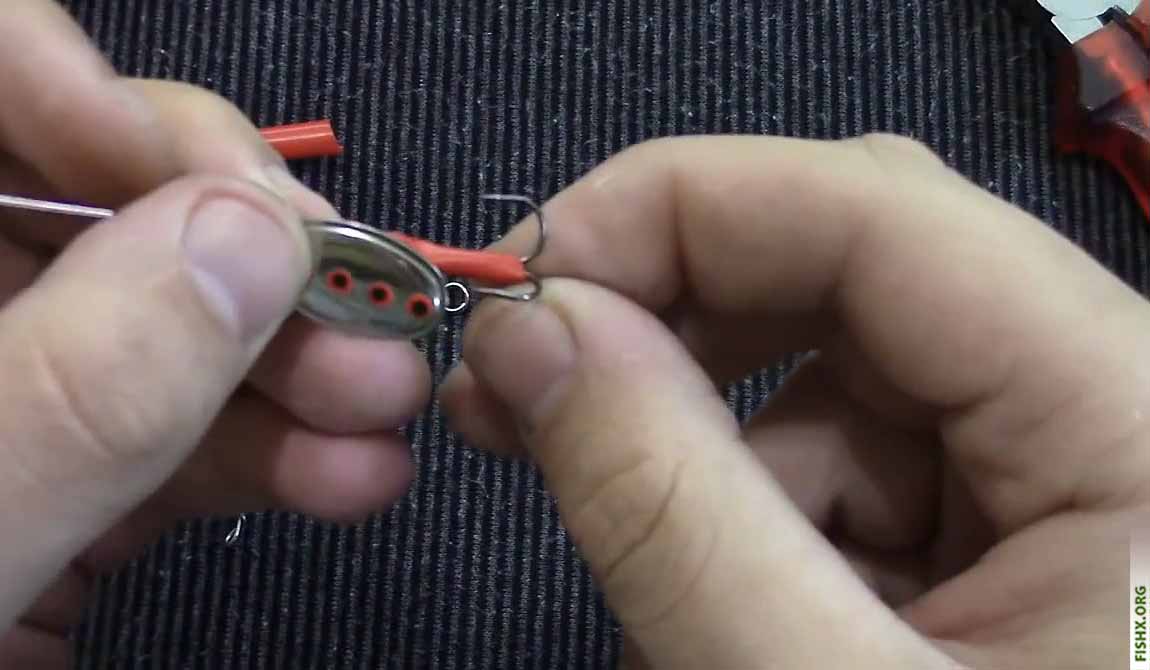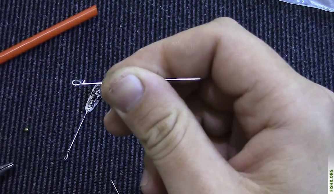 То есть сначала собирается всё точно так же, как на обычной стандартной переднеогруженной блесне. Если такая у вас есть, можете посмотреть более точно, как она собрана. Получается такая вот застёжка.