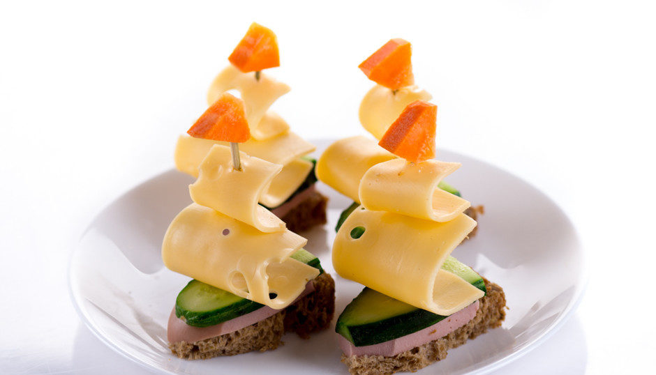 - Из сыра нарежьте прямоугольники — это будут паруса.