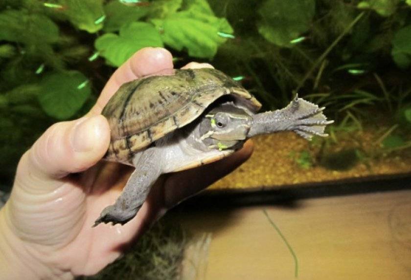 Каймановая тортилла довольно агрессивна, так что следует вести себя с ней аккуратно