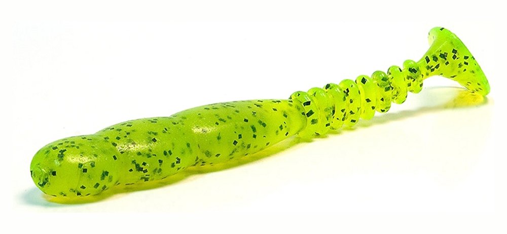 Твистер — силиконовая приманка, часто применяемая для поимки «клыкастого». Она имеет узкое тело и подвижный хвост, активно играющий при проводке. Судак лучше ловится на модели следующих цветов: