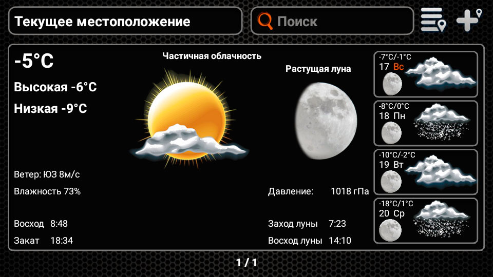 - Погода. Deeper Pro+ проанализирует ваше местонахождение и покажет погоду: температуру воздуха, осадки, давление.