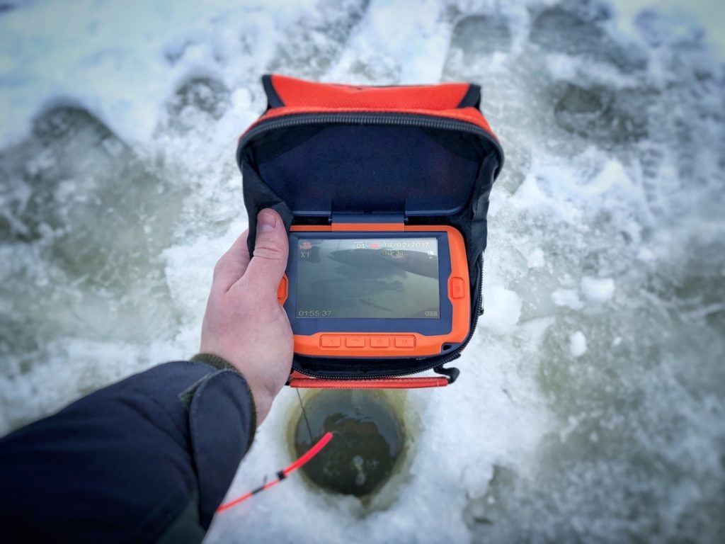 Когда датчик опустился в водное пространство, его медленными движениями начинают подтягивать к себе, наблюдая за происходящим на мониторе. Все то, что попадает в зону видимости датчика, четко отображается на экране, в частности, наличие рыб, рельеф дна, глубина водоема в конкретной точке ужения и остальные подводные предметы.
