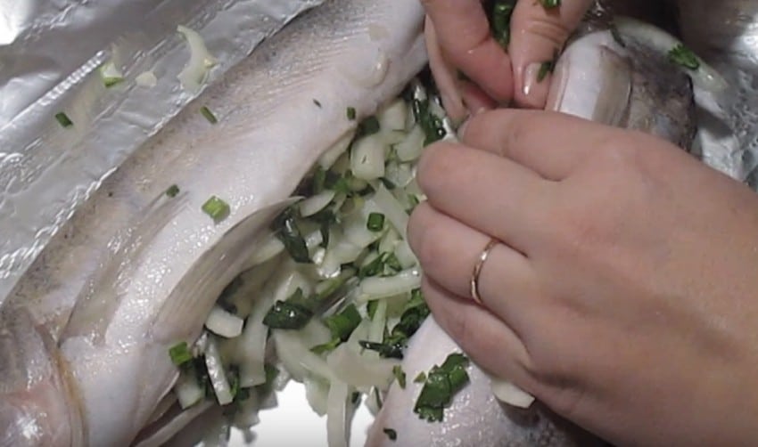 Рецепт приготовления судака, запеченного в духовке целиком в фольге с луком