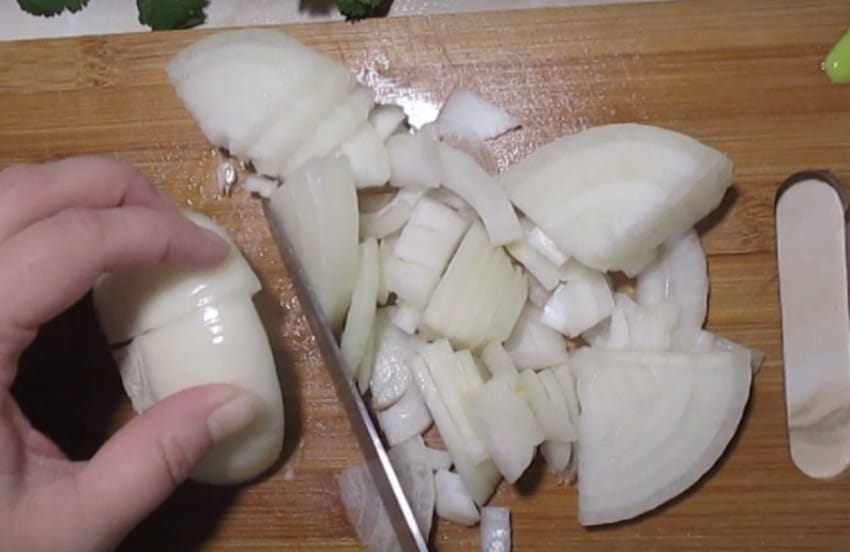 Моем две – три большие морковки или три – четыре маленькие. Очищаем ее от кожуры и натираем на крупной терке. Чистим две – три большие луковицы и нарезаем мелкими кубиками.