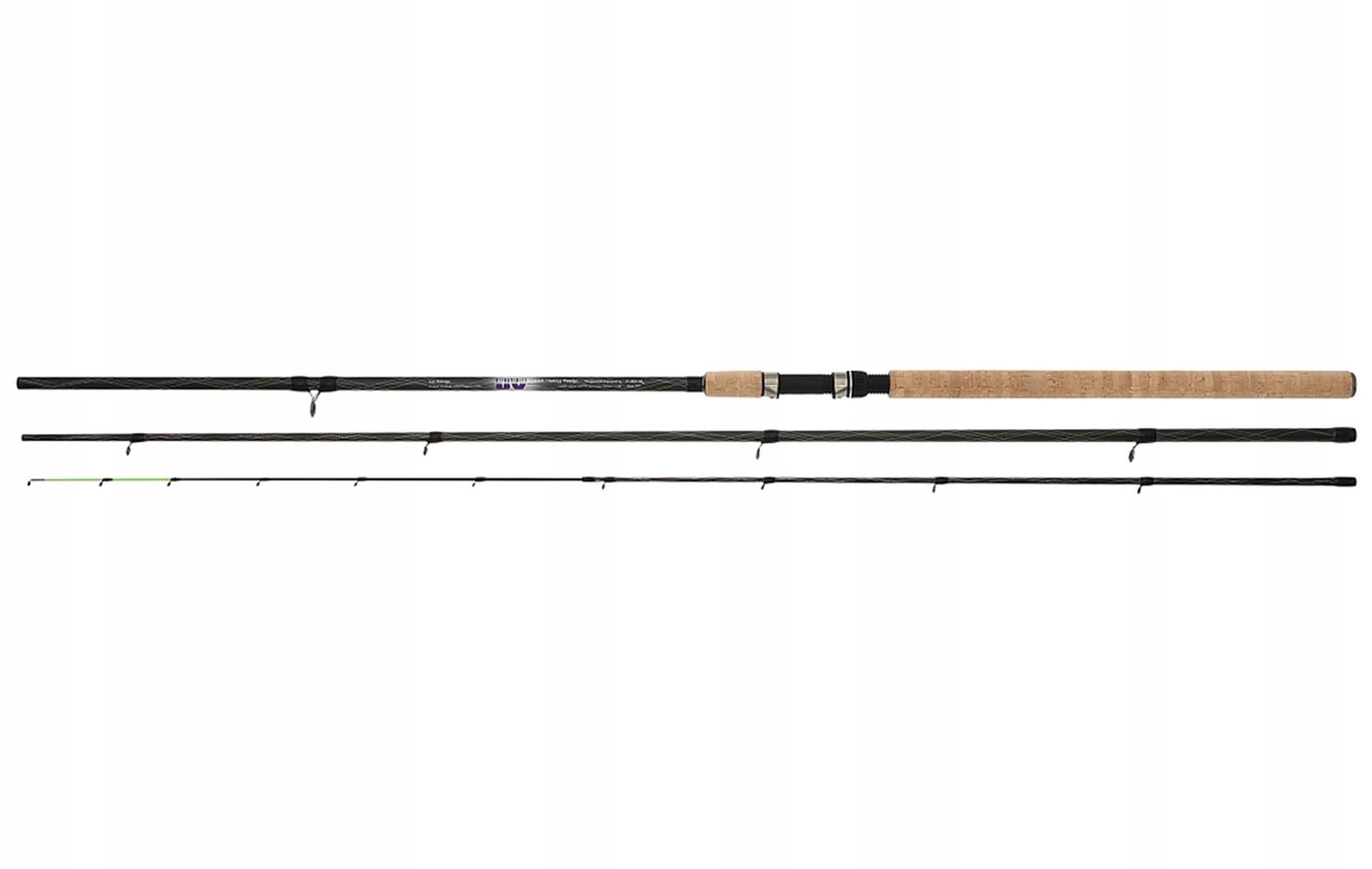 Мощная модель быстрого строя для предназначена для ловли на среднем, быстром течении с использованием тяжелой оснастки. Бланк изготовлен из композита. Величина теста предусматривает использование кормушек весом 40 – 90 г. Конструкция из 3 секций раскрывается на длину 3,6 м. При сборке она уменьшается до 1,27 м, что повышает удобство транспортировки удилища. Оснащено легкими пропускными кольцами SIC, комбинированной рукояткой, держателем катушки винтового типа.