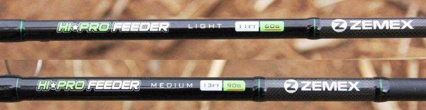 Фидеры имеют длину 3,3; 3,6; 3,9; 4,2; 4,5 метров. Тест обозначает максимальный вес, который можно забрасывать с помощью данного удилища. Он указывается непосредственно на бланке фидера: