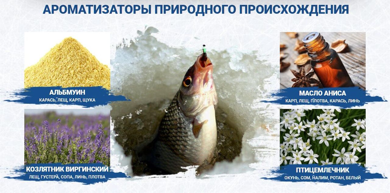 Лучше всего для зимней рыбалки подходят активаторы с такими ароматами: