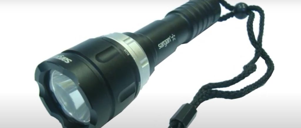 3 место рейтинг отдает фонарю для подводной охоты Сарган Беркут, обеспечивающий светопоток в 700 Лм. В приборе установлен светодиод Cree QR12, дающий белый свет. Данная модель устройства работает от стандартного аккумулятора 18650 (литий-ионный), имеет 5 режимов (SOS, стробоскоп, 10%, 50%, 100%) и отличается доступной ценой.