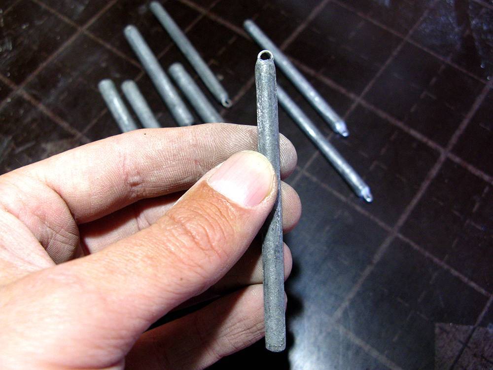 Для отливки таких пуль необходимо вставить в форму «закладную» из сталистой проволоки, смазанную обычным туалетным мылом, и сверху залить свинец. Собственно и всё.
