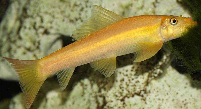 - Окрас туловища довольно контрастный. В основном гиринохейлусы имеют жёлтый, золотой или оранжевый оттенок, но иногда встречаются питомцы с буровато-серой спиной и пятнами.