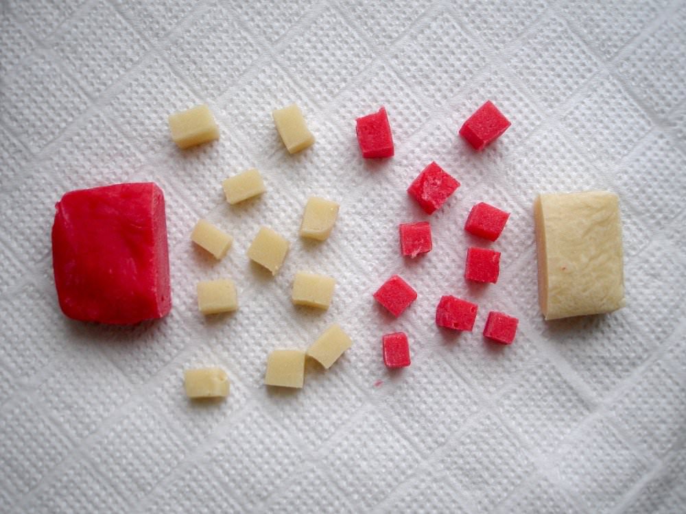 Фото 5. Готовую мастырку делим на 2 части: для насадки и для прикормки.