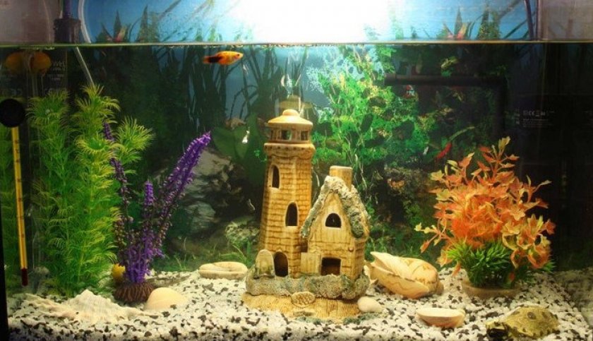 Главное правило при оформлении аквариума — нельзя загромождать пространство. Домашние обитатели не оценят ваших стараний, если основная площадь, предназначенная для плавания, будет перенасыщена искусственным интерьером.