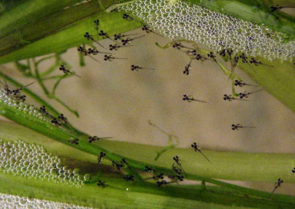 - сразу после икрометания увеличьте аэрацию, так как у малышей ещё не развит лабиринтовый аппарат и они не могут вдыхать кислород;