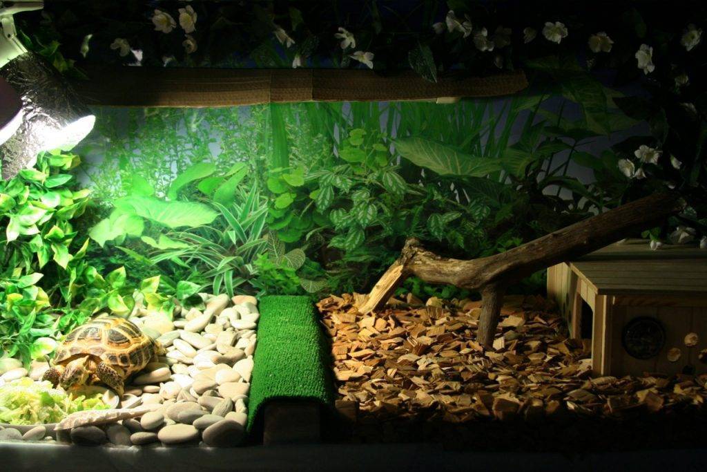 Размеры минимального террариума для черепахи высчитываются так. Длина будет равна длине черепахи, умноженной на 5, а ширина — ширине черепахи, умноженной на то же значение. Большая высота черепахам не нужна, террариумы даже для крупных особей нецелесообразно делать выше 50 см.