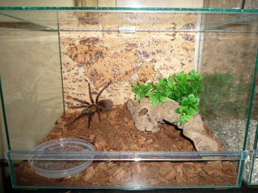 Большие объёмы птицеедам не нужны, в природе они всю жизнь проводят в укрытиях. Минимальная площадь дна равняется размаху ног паука, умноженному на 2.