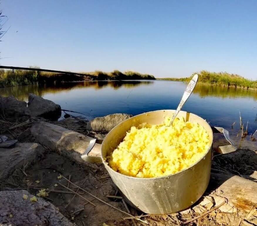 Так же, таким способом можно варить кашу прямо на рыбалке. Достаточно иметь нужный инструмент.