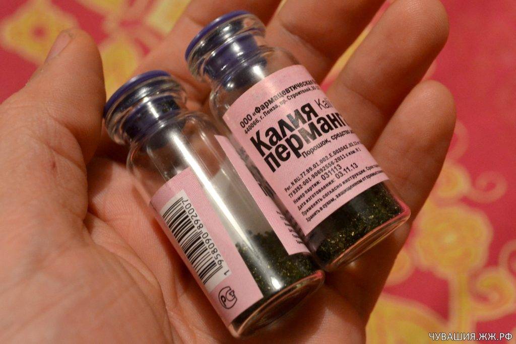 - на один литр воды понадобится 10 мг кристаллов марганцовки;