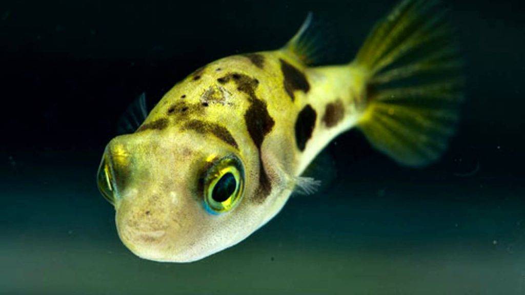 - тетрадон (отличительной особенностью этой рыбки является яркая и необычная окраска, её ярко-жёлтое тело покрыто черными пятнами).