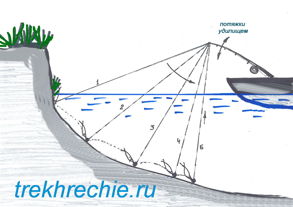 По перспективной зоне идут 3–4 раза, стараясь сделать так, чтобы приманка пересекала выбранный участок под разными углами. Такой подход позволяет тщательно обловить интересное место и «взять» всю активную рыбу.