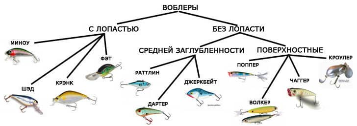 Этот признак характеризует поведение воблера на воде. Различают типы приманки: