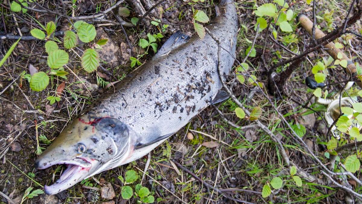 Счет открыт! Отметив поимку лосося («за Рыбу»), садимся обратно в лодки и продолжаем движение.