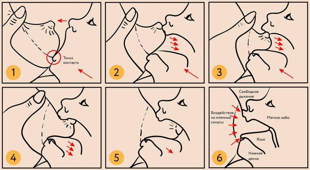 5 | Не использовать соски, бутылочки и накладки на соски | Механизм сосания искусственной соски отличается от сосания груди. Использование заменителей может привести к тому, что младенец начнет захватывать грудь неправильно. |