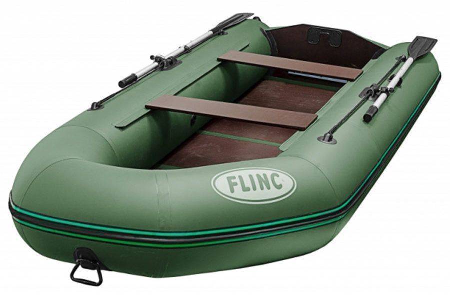 Моторная лодка FLINC FT320L из армированного ПВХ является трехместной и подходит под маломощный мотор. Товар приходит в специальной сумке, напоминающей конверт. В комплектацию входят весла, уключины, насос, ручки для переноски, леерный трос и ремкомплект. Сама конструкция выполнена качественно, все швы ровные, клея нет. Дно лодки ненадувное и усилено специальной резиновой полосой. Воздушных отсеков 3, вес лодки 30 кг. Выпускается средство в 2 цветах: серый и зеленый. Привычный киль отсутствует, вместо него имеются «поплавки», которые установлены в зону транцевой плиты. Такое замещение дает возможность уменьшать радиус разворота плавсредства.