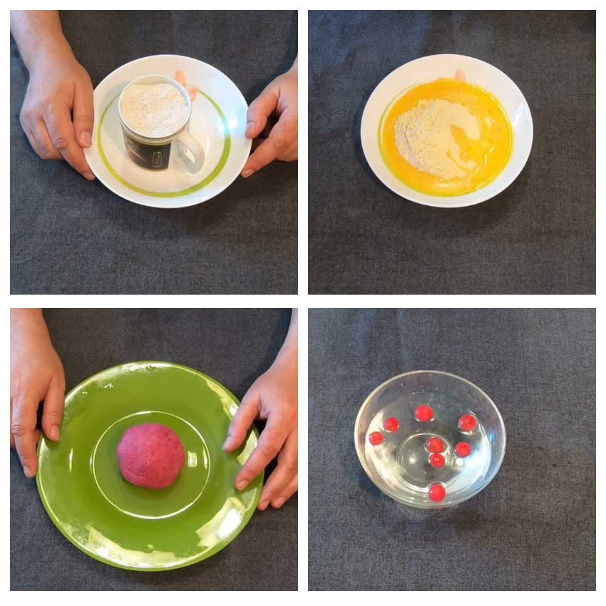 - Добавить муку и вымешивать до состояния теста.
