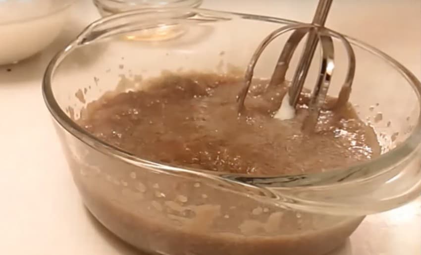 - Как только пена загустеет, делаем остановку примерно на 10 минут. Затем добавляем в полученную смесь масло растительное и взбиваем еще раз;