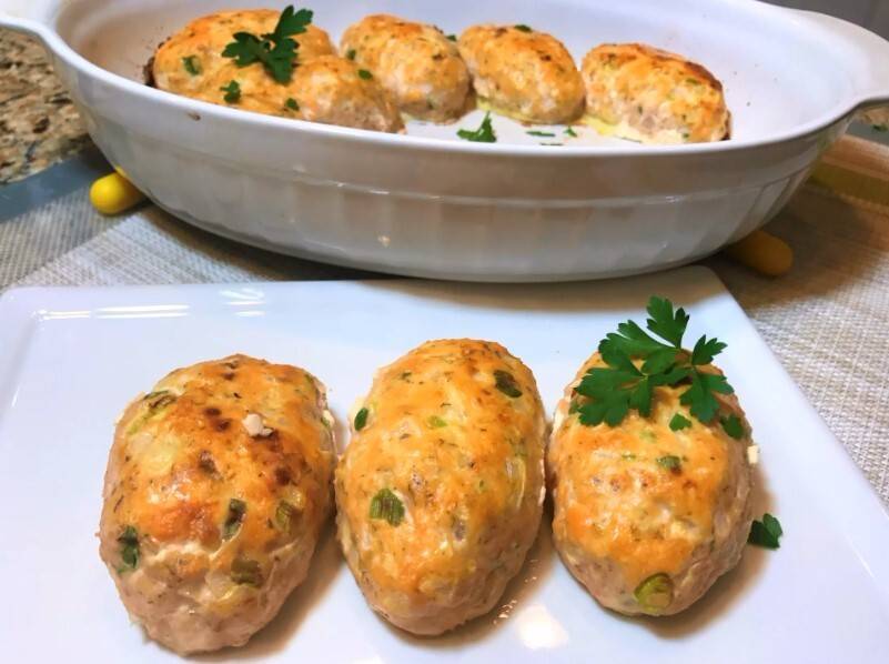 Диетический вариант блюда получится в духовке. Изделия выложите на противень, предварительно застелив его пекарским пергаментом. Если сбрызнуть их лимонным соком перед запеканием, вкус получится более изысканным.