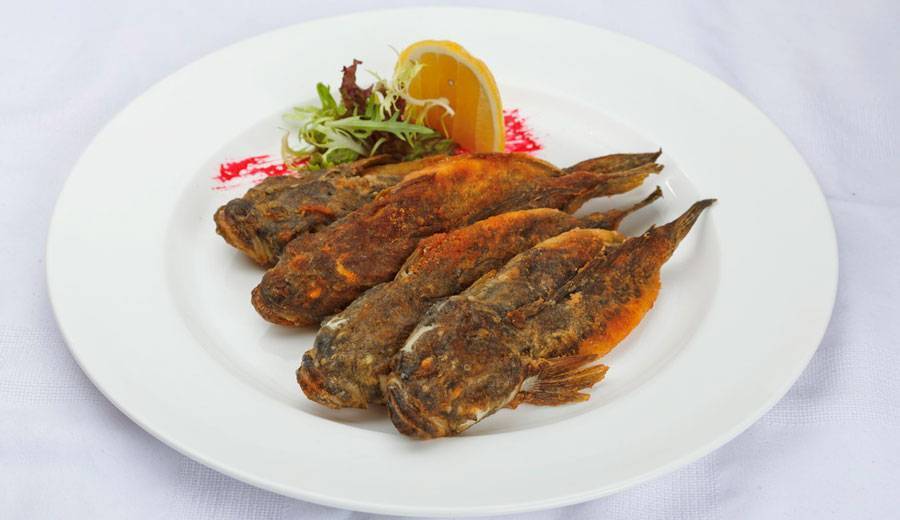 Жареная головешка. Выбирают крупные экземпляры. Потрошенные тушки можно нарезать на кусочки, но лучше пожарить целиком. Рыбку хорошо обваливают в муке и прожаривают с двух сторон до румяной корочки светло-коричневого цвета. Используют растительное или сливочное масло. Чтобы получилась хрустящая корочка, за 5 минут до окончания готовки сковороду закрывают крышкой.