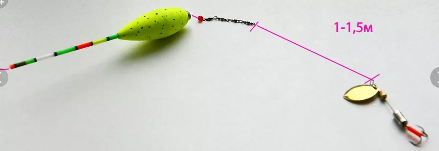 Благодаря тяжести приманки грузик в таком монтаже не ставится, так как приманка используется на разных глубинах.
