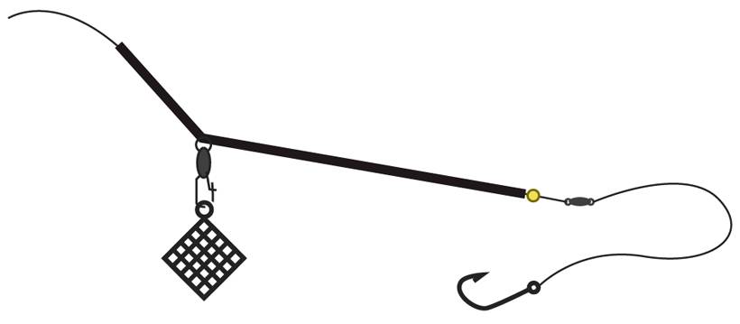Простая самоподсекающая оснастка фидера, имеет чувствительный петлевой механизм и эффективна при лове в спокойных водах.