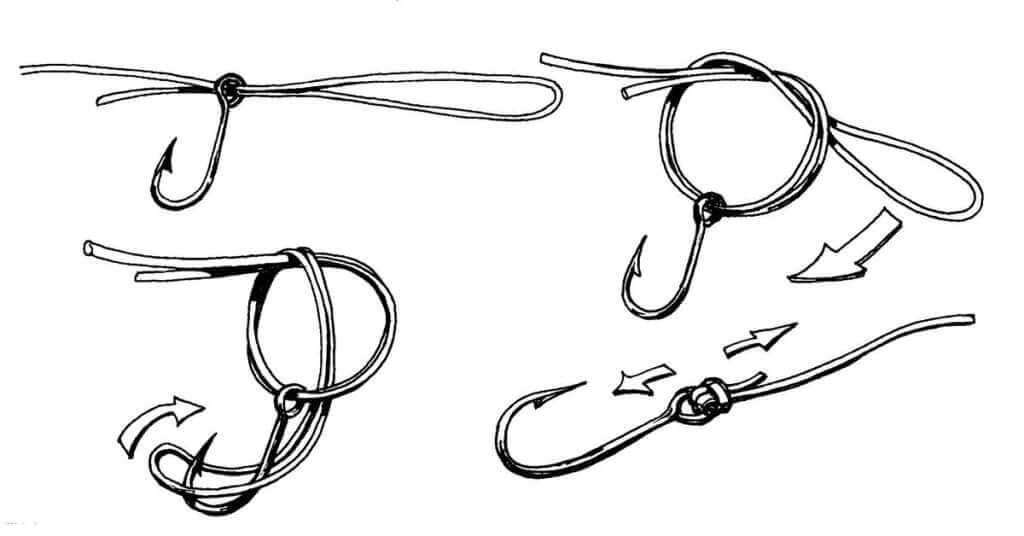 - Теперь возьмите конец лески и протяните её в получившуюся петлю;
