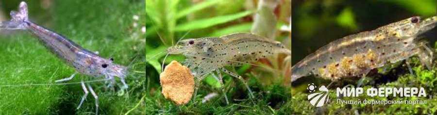 Примерно раз в 1,5-2 месяца креветки откладывают икру; выживают обычно максимум 30 личинок: их нужно отсадить отдельно. В процессе роста креветки могут линять более 10 раз – при этом они сбрасывают панцирь и прибавляют в размере. Затем линька происходит значительно реже