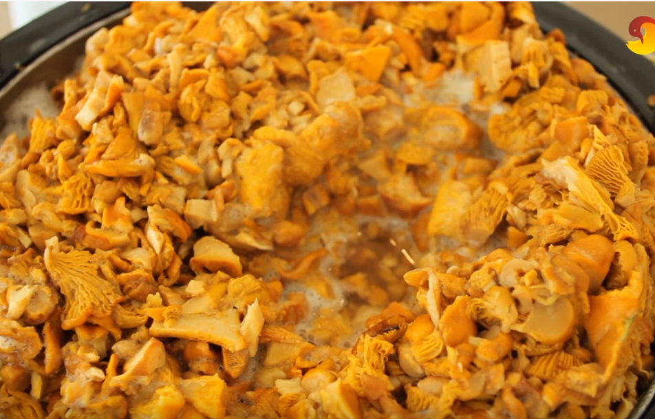Вода доводится до кипения и на медленном огне банки прогреваются около 1часа. В это время должна выделиться жидкость, которая сливается в отдельную емкость. Предварительно кипятится растительное масло, которое после слива сока заливается в банки. На одну емкость требуется 5-6 столовых ложек масла.