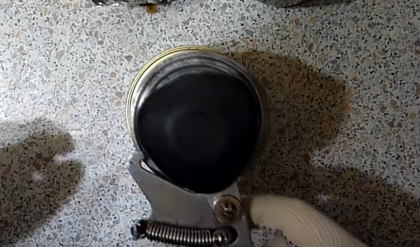 Дальше надо закрутить банки закаточным ключом. Итого получилось пять банок в масле. Масла взяли по две столовые ложки.