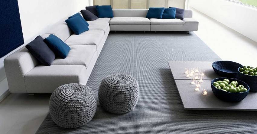 Если позволяет стилистика квартиры, пуфу можно выделить место яркого акцента. В таком случае он может не сочетаться с другими предметами мебели. Такое решение вписывается в современные дизайнерские проекты.