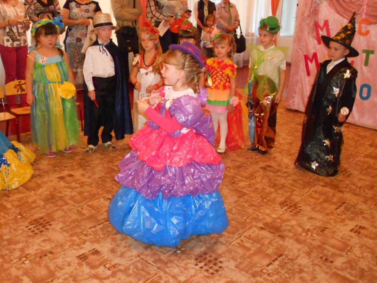 Из отходов можно также сделать интересные и смешные модели одежды — поделки из бросового материала своими руками. Платье для девочки соорудите из газет, пакетов, стаканчиков или тарелок. Делайте примерки, дефиле и модные показы, это весело и очень развивает фантазию будущих модельеров, учит нестандартному мышлению.